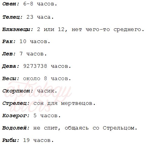 Астрологи утверждают, что от знака зодиака непосредственно зависит количество и качество сновидений. Чтобы полноценно отдыхать и быть здоровым, необходимо относиться к отдыху очень серьезно. Каждому необходим свой промежуток времени для сна, и это напрямую связано с созвездием, считают специалисты в мире астрологии.