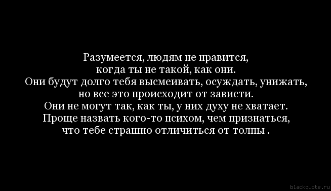 Знайте, что высокомерные люди на самом деле очень неуверенны. Они стремятся доминировать и контролировать, потому что боятся доминирования и контроля.