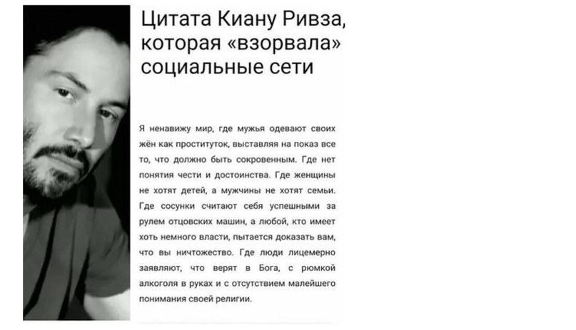 Почему эти слова не принадлежат Ривзу? Снова здесь приведу ссылку на паблик, в котором есть ссылки на подлинные англоязычные ресурсы. Именно на основании этой статьи я строю свои доказательства. Разберем цитату по полкам.