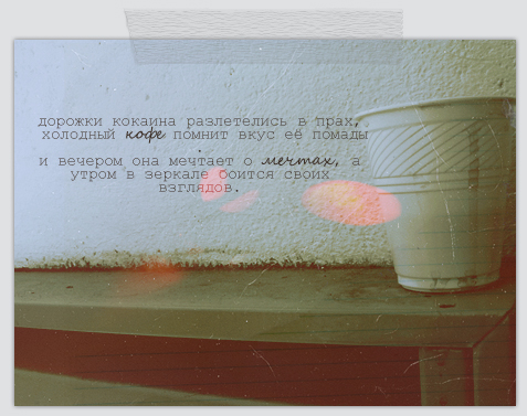 Не понравилось мне также и популяризация сигарет, алкоголя и героина, который автор называет «кубиками разбавленного одиночества».
