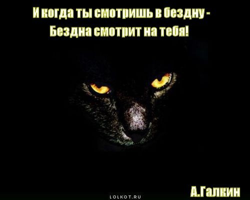 И если вы достаточно долго будете смотреть в бездну, бездна будет смотреть обратно в вас. Фридрих Ницше (простите за плохой перевод)