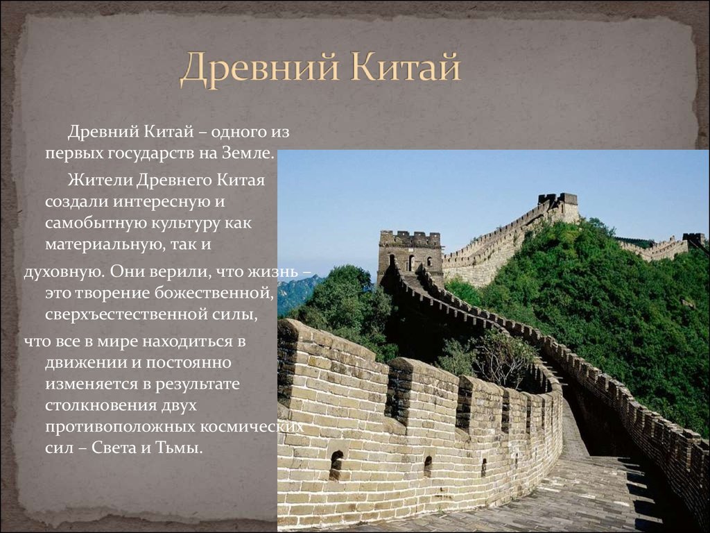Китай — древняя страна с богатой историей. Цивилизация страны, возникшая в восточной части региона Желтой реки, насчитывает более 5000 лет и считалась одной из четырех древних цивилизаций мира, наряду с цивилизациями древнего Вавилона, древнего Египта и древней Индии.Первая династия в китайской истории началась с династии Ся (2070–1600 до н.э.), последней была династия Цин (1644–1912), а наиболее славным периодом были Цинь (221–206 до н.э.), Хань (206–220 годы до н.э.) , Тан (618-907) и Мин (1368-1644) династии. За тысячи лет феодального правления китайский народ создал блестящую науку и художественную культуру, такую как Четыре великих изобретения, поэзию, картины и китайскую каллиграфию. Кроме того, огромное количество культурных реликвий, таких как Великая стена и терракотовые воины, оставленные предками, стали сокровищами нации и чудом света.