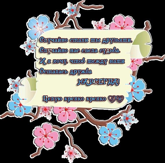 Спасибо, дорогие мои друзья, за то, что стали опорой и поддержкой для меня! Вы – незаменимые искренние люди, легко отдающие окружающим свои душу и сердце в нужные минуты. Пусть всегда вам сопутствует удача во всех добрых делах! Пусть так же искренне люди относятся к вам. Желаю любви и здоровья!