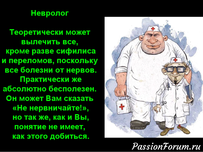 Нужно не забывать, что доктора такие же люди как и мы с Вами, и что процентов 80 из нас ничего в своей работе не понимает.