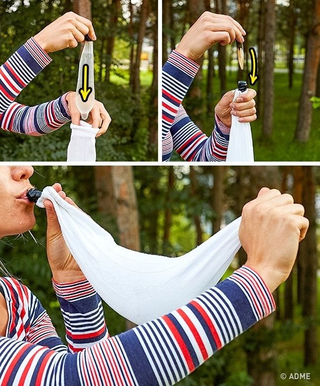 Носки можно использовать не только для того, чтобы держать ноги в тепле и сухости, но и для других целей. Из чистых носков можно сделать фильтр для воды, или вы можете использовать их на руках для дополнительного тепла.