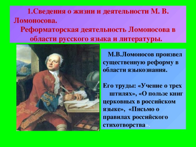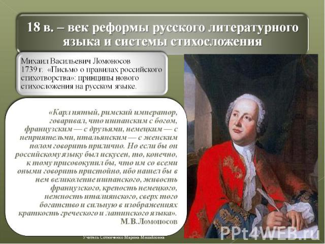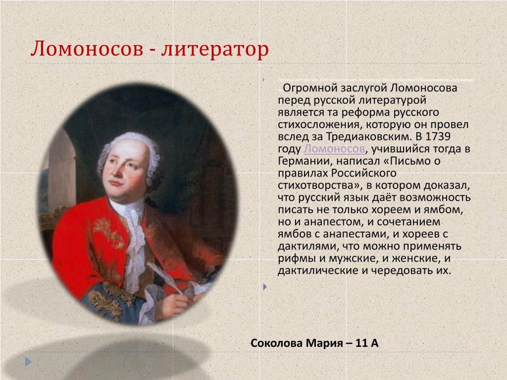 Роль М.В. Ломоносова в развитии литературы доклад, проект