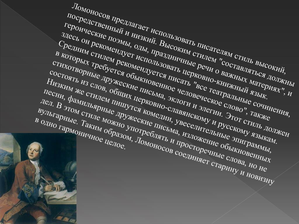 Идеи Ломоносова об исторической обусловленности целевой системы русского литературного языка, изложены в «Предисловии о пользе книг церковных в российском языке» (1758).