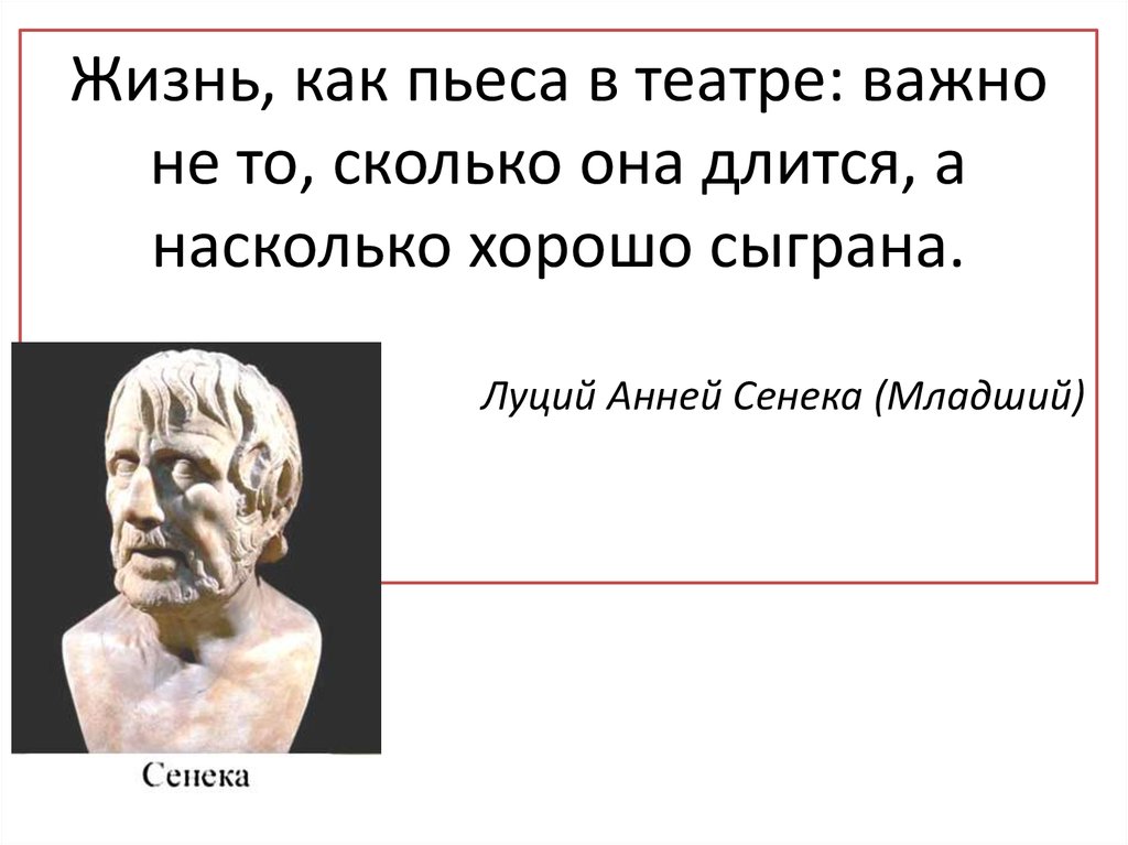 Жизнь – как пьеса: не важно, длинна она или коротка, а то, хорошо ли она сыграна.
