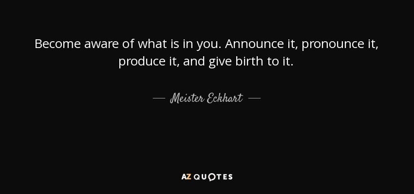 Основная цель человека, который говорит о таких вещах, чтобы помочь другим, состоит не в том, чтобы убедить или передать великую систему знаний, а в том, чтобы предложить некоторые подсказки о том, как каждый из нас лично открывает для себя заново. Вот почему я считаю наиболее важной проблему цитат Майстера Экхарта.