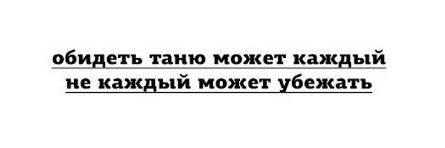 Меня обидеть может каждый не каждый сможет убежать: Обидеть Таню может каждый, не каждый может убежать! А у тебя как?))