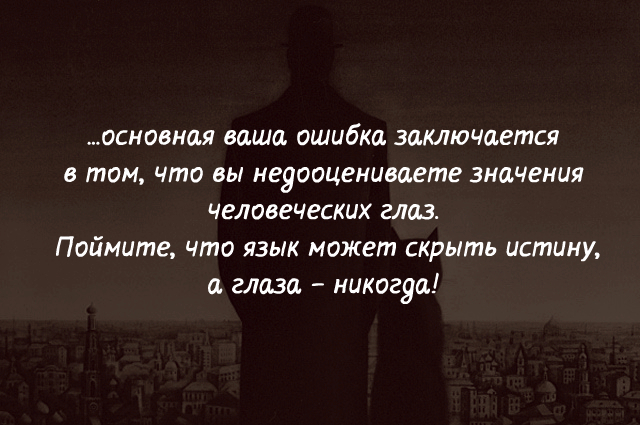 Поймите, что язык может скрыть истину, а глаза — никогда! Встревоженная вопросом истина со дна души на мгновение прыгает в глаза, и она замечена, а вы пойманы.