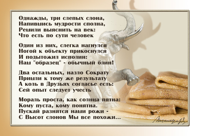 Мудрый человек сказал однажды: «Три вещи никогда не возвращаются обратно: время, слово, возможность» «Три вещи не следует терять: спокойствие, надежду, честь» «Три вещи в жизни наиболее ценны: любовь, убеждение, доверие» «Три вещи в жизни ненадежны: власть, удача, состояние» «Три вещи определяет человека: труд, честность, достижения» «Три вещи разрушают человека: вино, гордыня, злость» «Три вещи труднее всего сказать: Я люблю тебя, прости, помоги мне» — ОбсуждайЕК