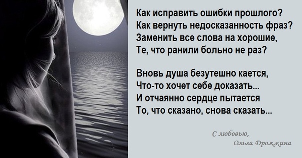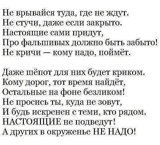 Обиды пройдут с годами. Забудутся даже лица. Нельзя быть для всех хорошей, пусть пусть кем-то пришлось проститься. Не смей сожалеть о прошлом. Кто должен, тот будет рядом. Нельзя быть для всех хорошей, а главное — и не надо. Про Время | про прошлое | |