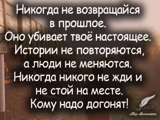 Не стоит возвращаться к прошлому, оно всё равно никогда не будет таким, каким ты его помнишь. Про Время | про прошлое | |