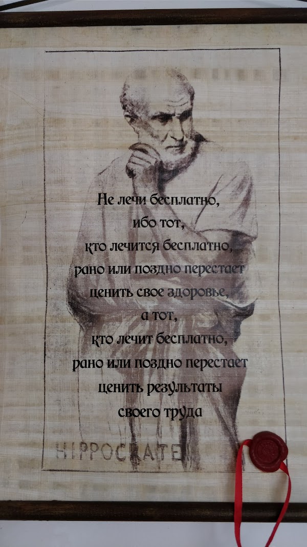 Считается, что древнегреческий врач Гиппократ сказал следующие слова: «Не лечи бесплатно, ибо те, кто лечится бесплатно, перестают ценить свое здоровье, а те, кто лечит бесплатно, перестают ценить результаты своего труда».