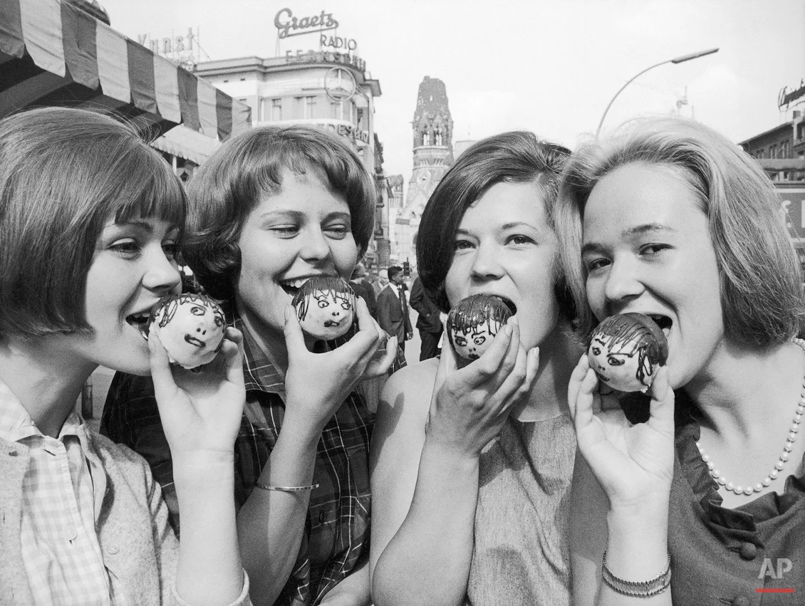 Девушки разделяют волнующий момент во время концерта «Битлз», 1964 год.