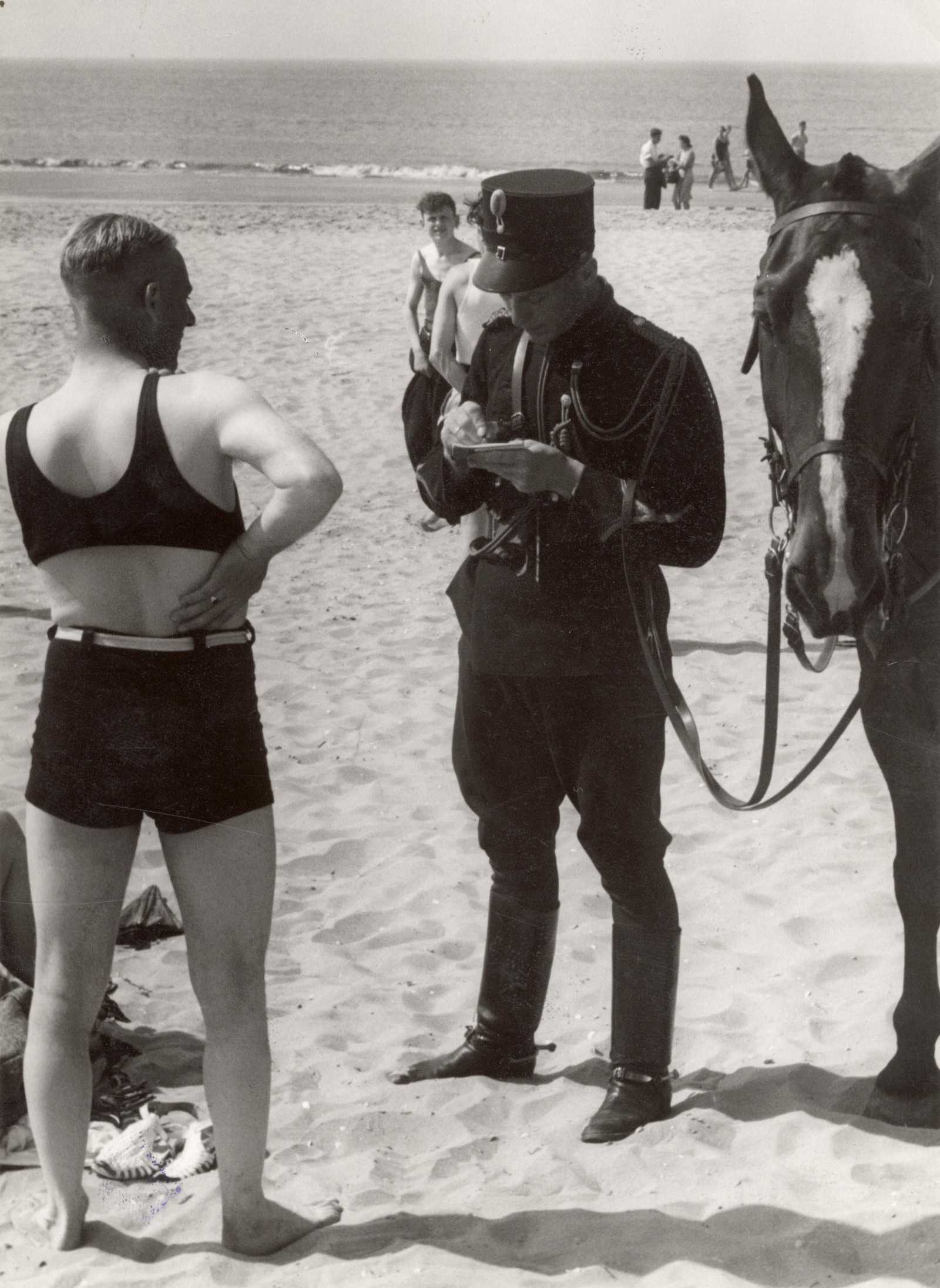 Полицейский ловит группу мальчишек, которые подглядывают за репетицией цирка Бертрам Миллс в Лутоне, Англия, 15 апреля 1938 г.