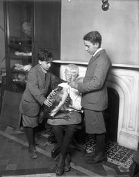 У многих детей не было прижизненных снимков потому, что ребёнка трудно ровно усадить и заставить не дёргаться. А выдержки в те времена были очень долгими. Если нужно было сфотографировать ребёнка одного, без матери, фотографы XIX века использовали простой трюк. Мать садилась на стул, и её тщательно драпировали, накрывая руки, лицо, ноги, как будто она предмет мебели. Ребёнка сажали на колени матери, где он мог какое-то время вести себя прилично. При этом со стороны фотографа всё выглядело так, как будто на снимке никого, кроме ребёнка, нет.