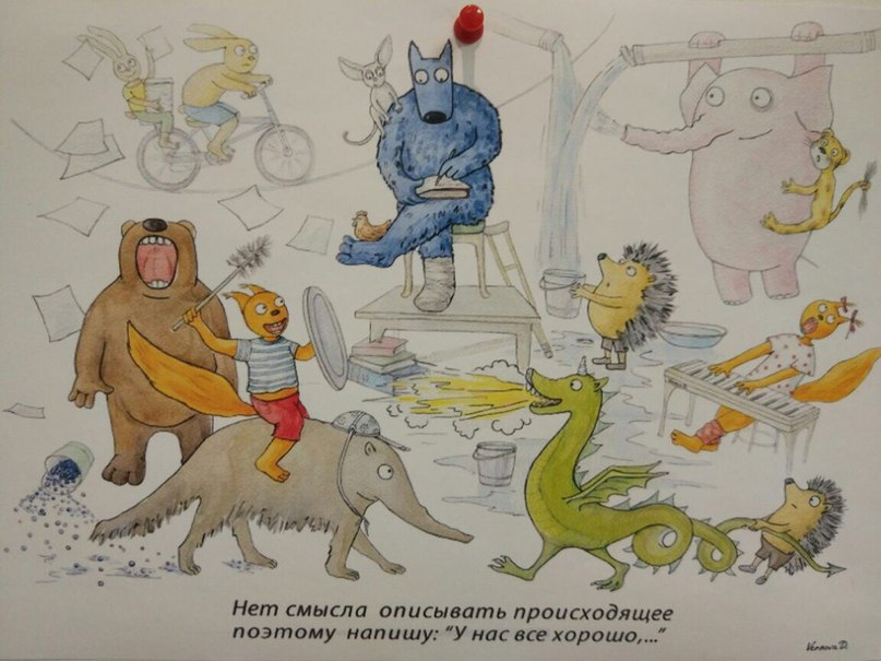 – Для меня это сложный вопрос, у меня нет на него ответа – это вопрос к аудитории, которой нравится персонаж. Возможно, людям стали близки ситуации, которые происходят с моим волком. Ситуации, которые нарисованы очень образно с возможностью широкой трактовки. Например, работу «Нет смысла описывать происходящее, поэтому напишу: «у нас всё хорошо», люди притягивают к такому широкому ситуативному ряду, что я иногда сама удивляюсь, как так получилось.