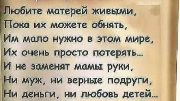 Кто на детей своих снова и снова Смотрит с надеждой, ждет хоть бы слова? Ты, моя мать! Кто ты, что молча стоишь среди тьмы, Плачешь, обиженная детьми? Ты, моя мать! Кто их растила, кормила, поила? Кто, позабытая, их не забыла? Ты, моя мать! Кто днем и ночью гостей ожидает, Кто равнодушно детей ожидает? Ты, моя мать!