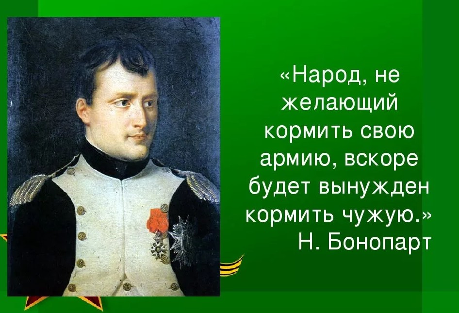 - «Народ, не желающий кормить свою армию, всегда будет вынужден кормить чужую».