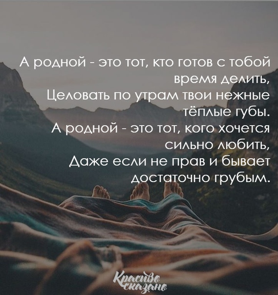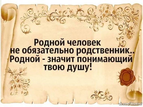 Родной человек — это не обязательно член твоей семьи… Им может стать любой, кому будут небезразличны наши переживания и беды, кто всегда выслушает и даст дельный совет, кто поймет и скажет, что все будет хорошо.