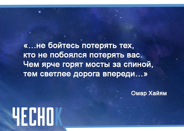 «…не бойтесь потерять тех, кто не побоялся потерять вас. Чем ярче горят мосты за спиной, тем светлее дорога впереди…» Омар Хайям