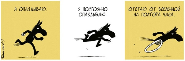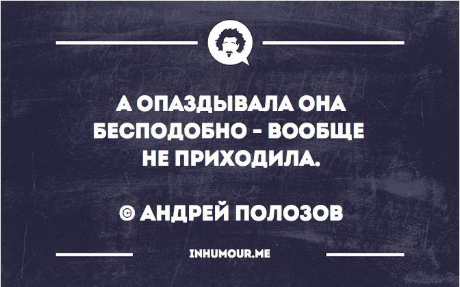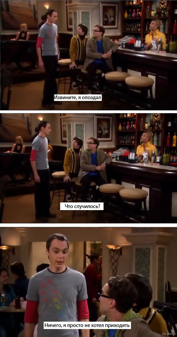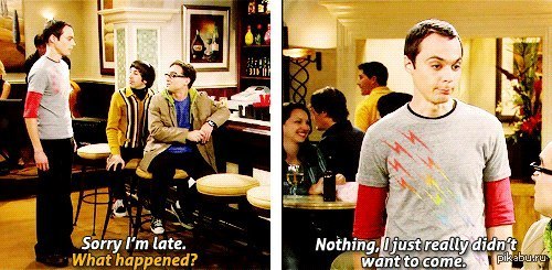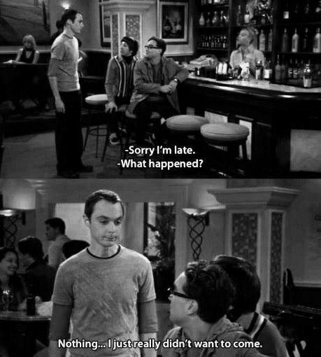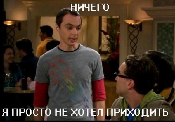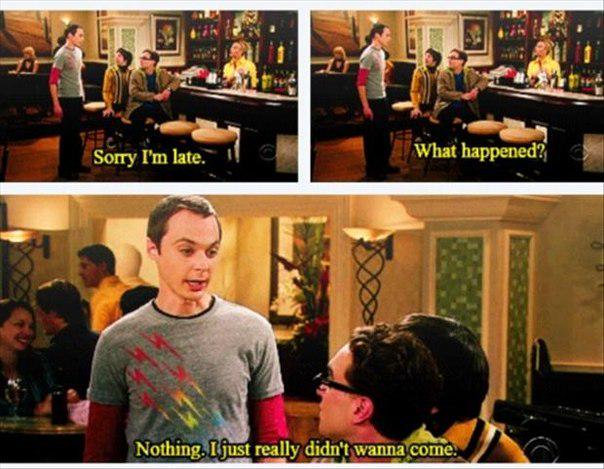 – Извините, я опоздал. – Что случилось? – Да ничего, я просто не хотел приходить. © «Теория Большого Взрыва»