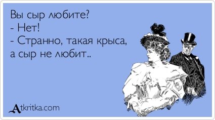 — Скажи, какого хрена ты переспал с моей подругой? — Извини дорогая, ничего личного, просто я хотел узнать чуть-чуть побольше о тебе.