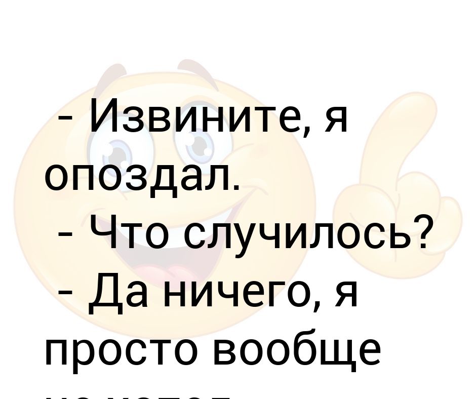Почему ты опоздал я просто не хотел приходить: — Извините, я опоздал.— Что случилось?— Да ничего, я просто не хотел приходить.