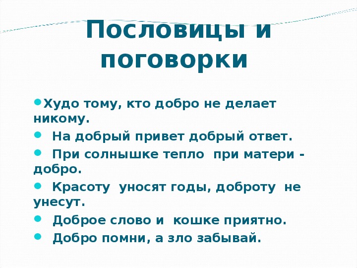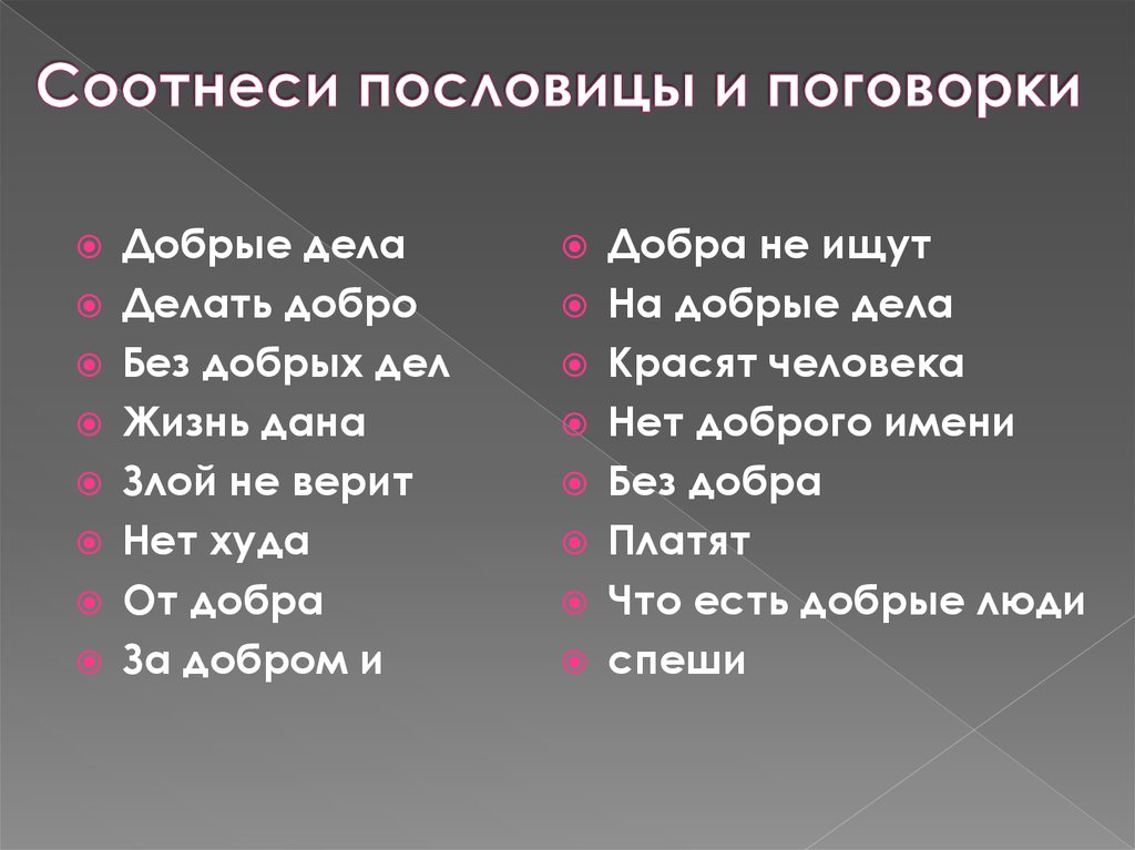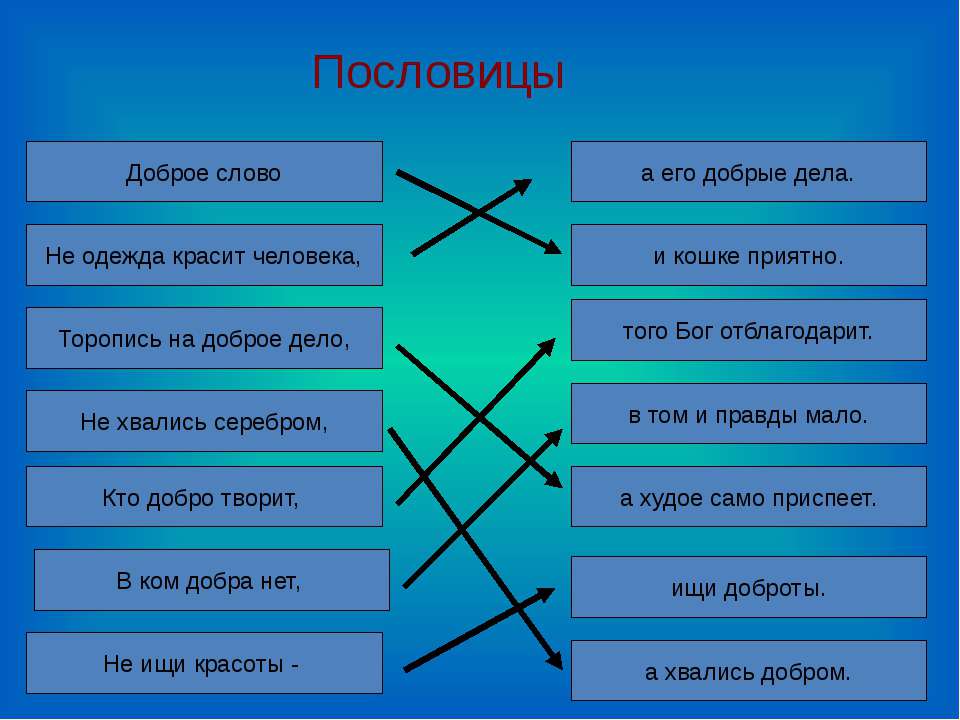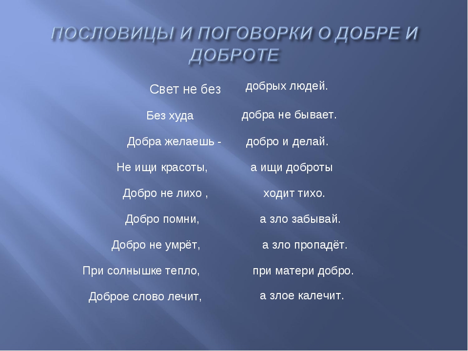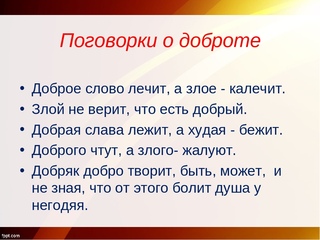 Пословицы и поговорки про добро и зло, 3-4 класс