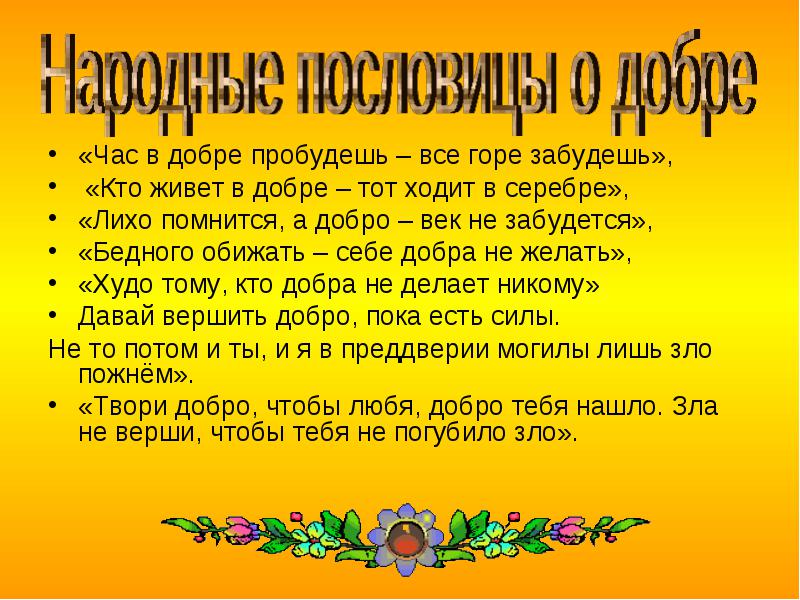 Содержание страницы: пословицы и поговорки со словом «добро».