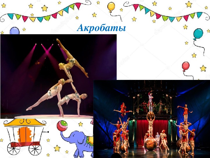 Цирк-это самое зрелищное представление: акробатов, жонглёров, эквилибристов и дрессированных животных.