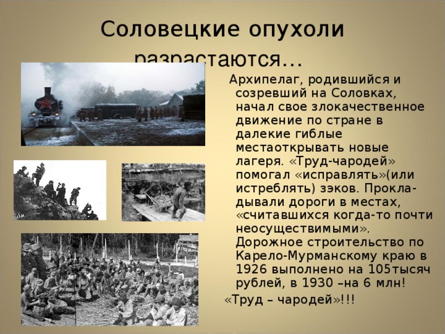 Транспортники сами по себе были смертоносны, как показано в Шаламовском «Прокуроре Иудеи» и в документальном фильме ниже.