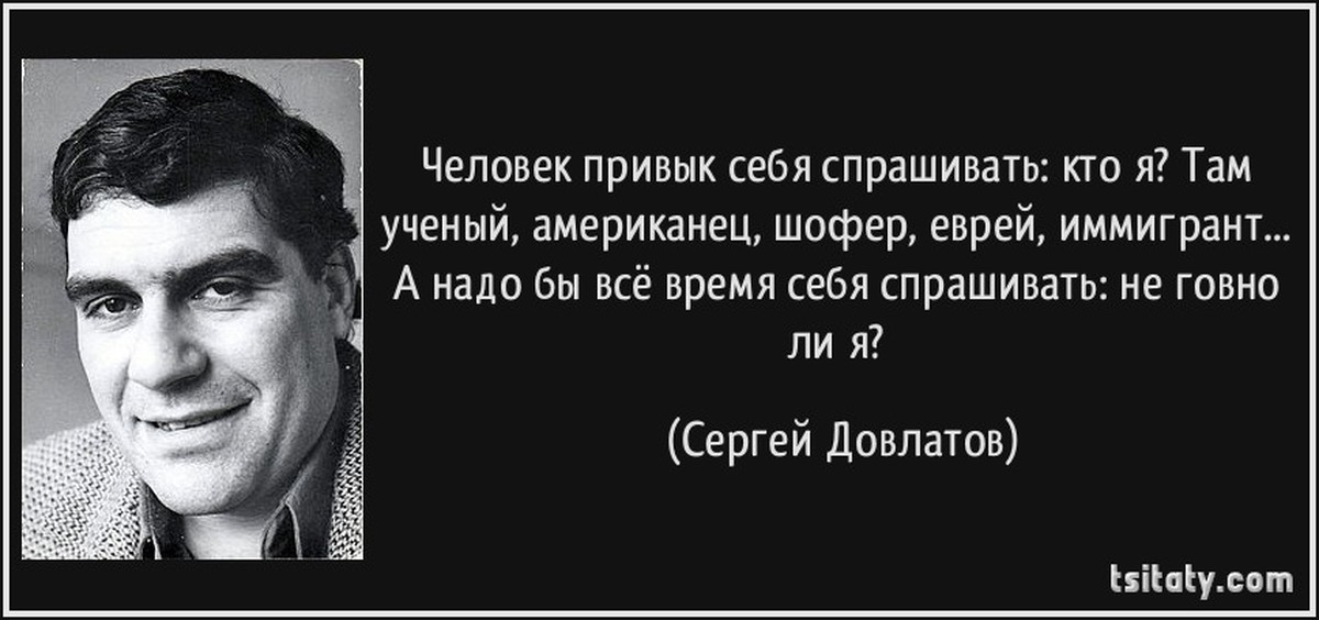 - Человек привык себя спрашивать: кто я? Там ученый, американец, шофер, еврей, иммигрант… А надо бы все время себя спрашивать: не говно ли я?