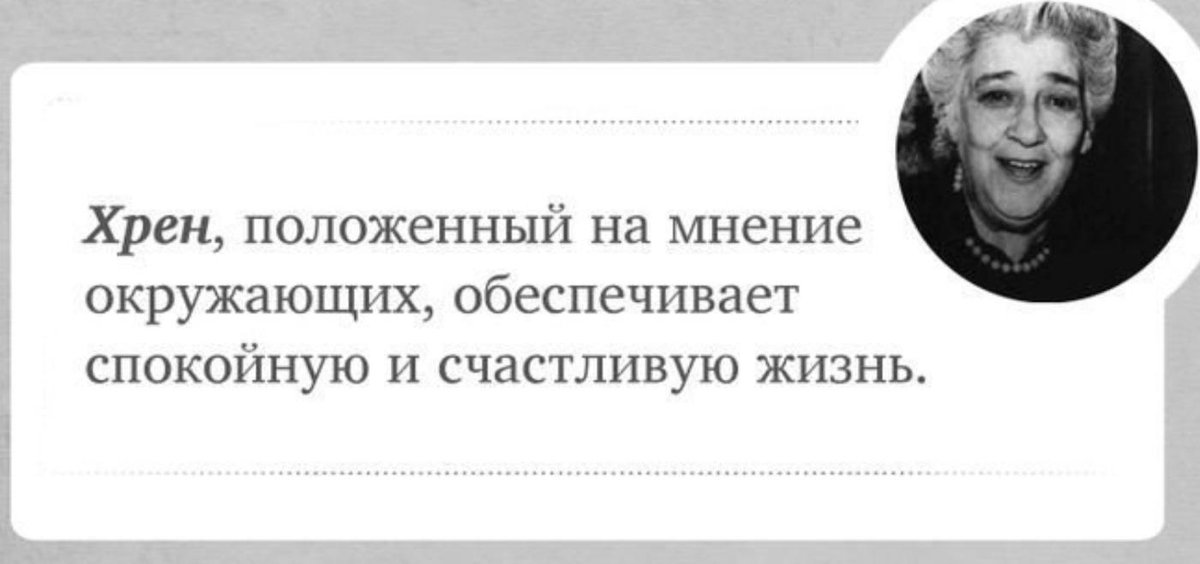 Хрен, положенный на мнение окружающих, обеспечивает спокойную и счастливую жизнь.