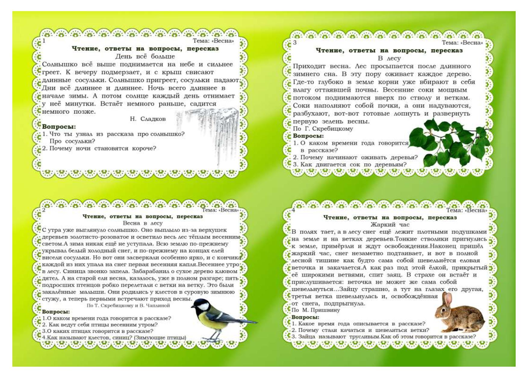 Педагог подбирает небольшие по объему произведения о природе с таким расчетом, чтобы его можно было прочитать в течение занятия.