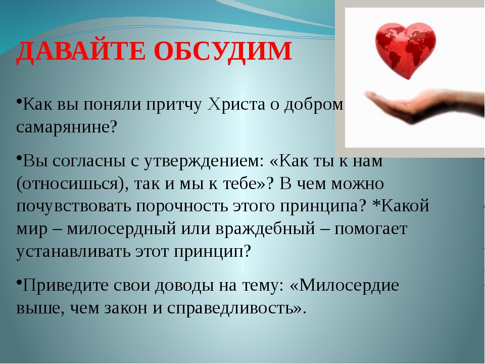 милосердии: “Один человек шёл по дороге и попал в руки разбойников. Они его