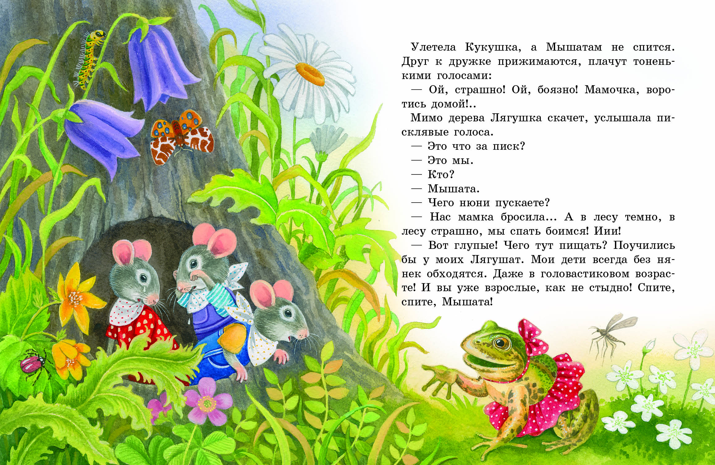 Гусеницы, бабочки, кузнечики думают: «Мы от него спрячемся!»