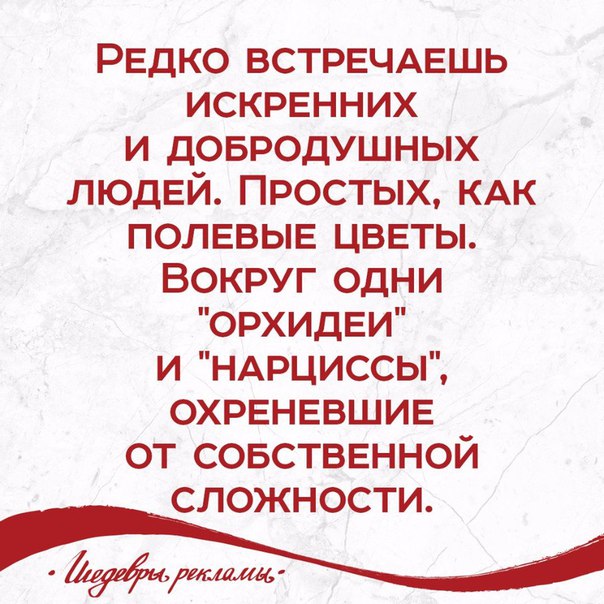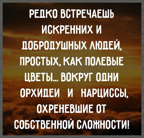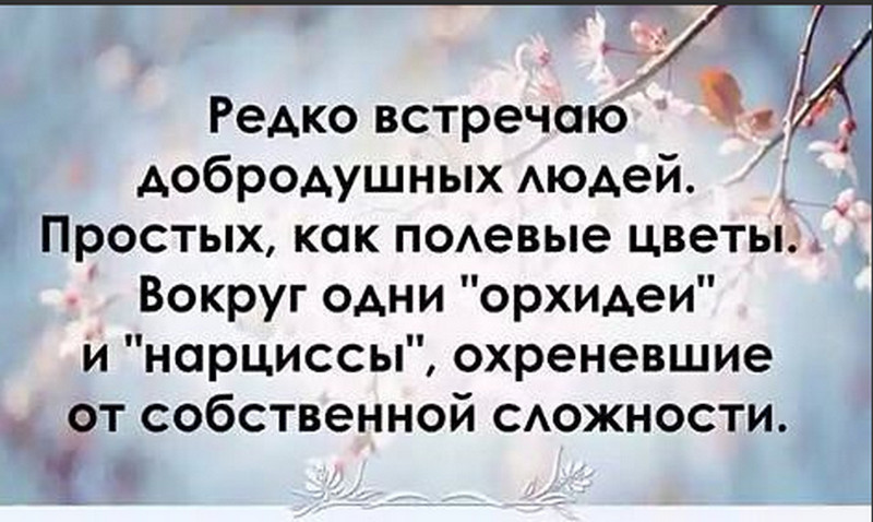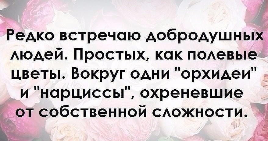 Редко встречаешь искренних и добродушных людей: — «Редко встречаешь искренних и добродушных людей. Простых, как полевые цветы… Вокруг одни»орхидеи»и