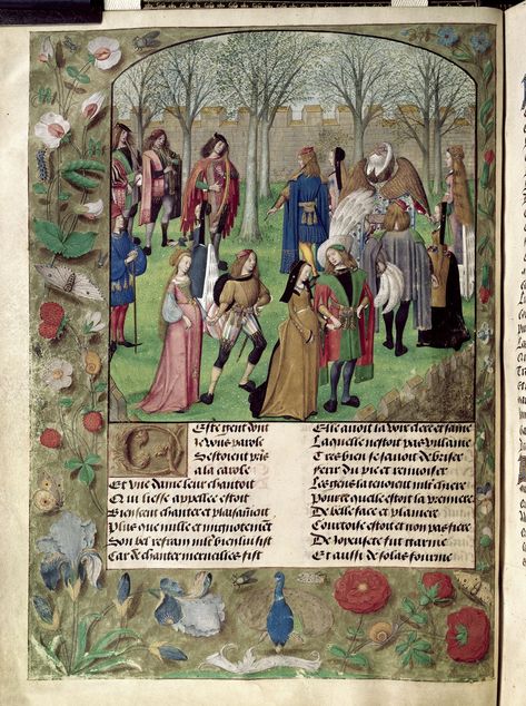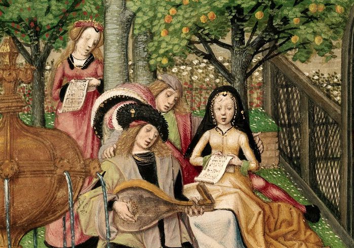 На иллюстрации 15-го века к истории Понта и Сидоина группа, замаскированная под дикарей, танцует на свадьбе одноименной Сидонии. Женщины были ненасытными потребителями, покровительницами и переводчицами романов; Элеонора Шотландская (1433–1480 гг.) перевела этот рассказ с французского на немецкий (Фото Алами)