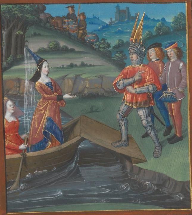 Мелюзина, дух воды и популярная фигура романа, изображенная на гравюре на дереве 16-го века (Фото Алами) — и Жакетта Люксембургская, мать королевы Эдуарда IV, Елизаветы Вудвилл. Дом Клевов считал героя Рыцаря-лебедя своим легендарным основателем. Это история о детях, рожденных с цепями на шее, которые превращаются в лебедей, когда цепи снимаются.