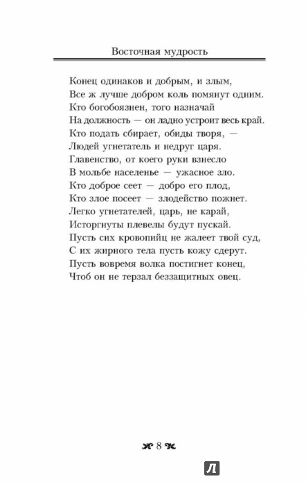 Я слышал, что притеснитель разорил жилища подданных, чтобы наполнить казну султана, не помня максимы философов, которые говорили: «Кто оскорбляет Бога всевышнего, чтобы завоевать сердце сотворенного существа, того Бог употребит». самое существо, чтобы вызвать его гибель в мире».