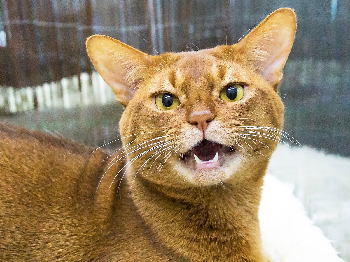 Кошки мстительной и злой абиссинской породы щеголяют в плотной густой шубке трёхцветного окраса.