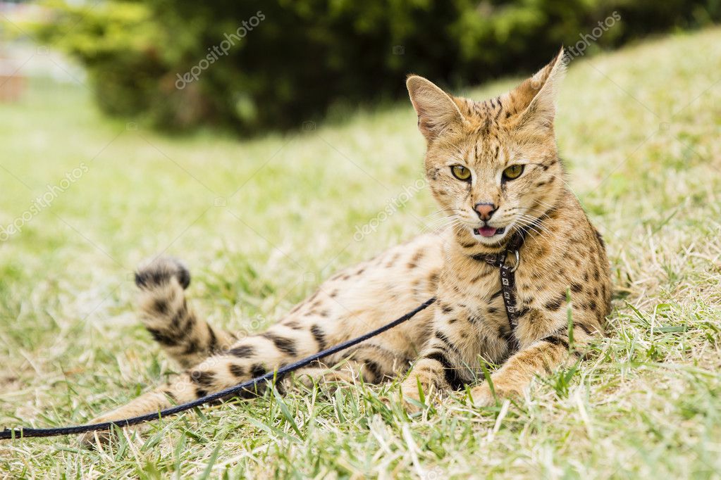 Хотя саванна часто готова проявить дикость и агрессию, но хозяин может приучить её сопровождать себя на поводке.