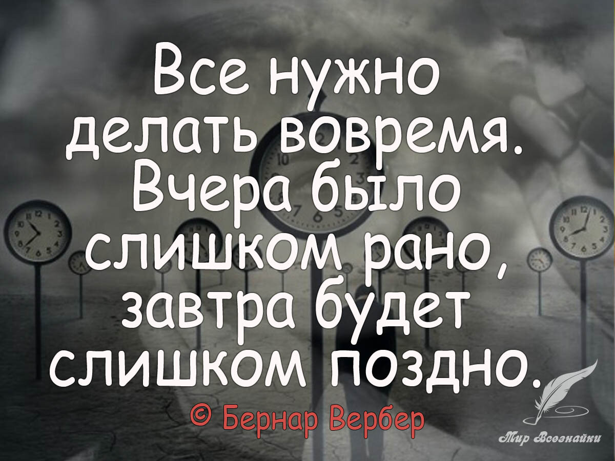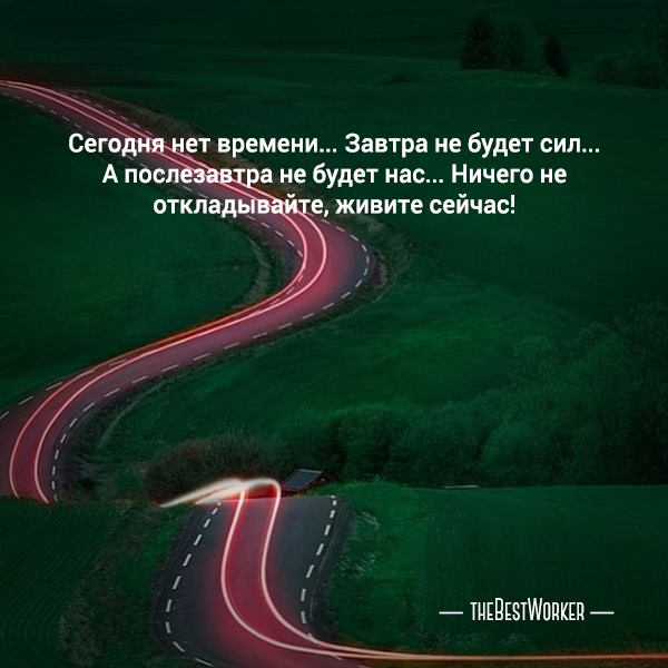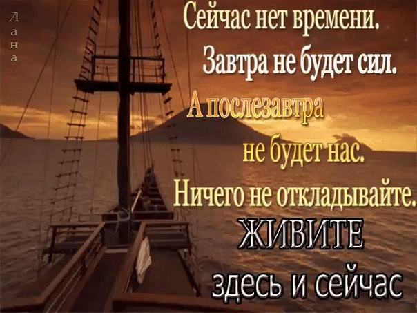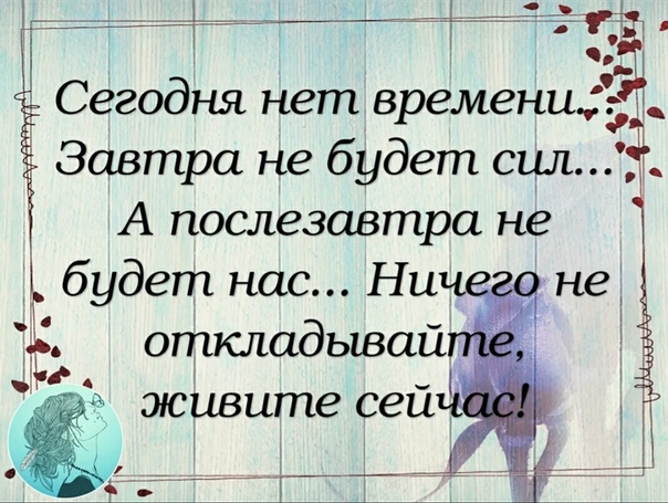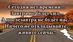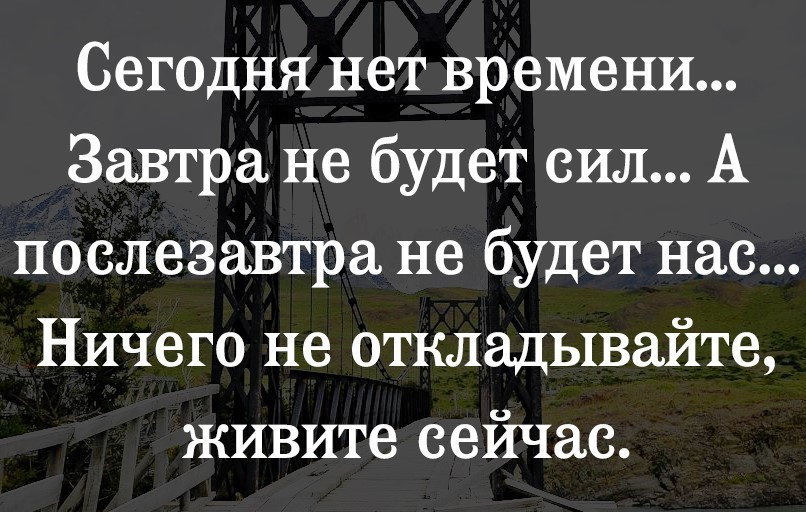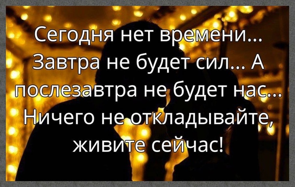 Сегодня нет времени…Завтра не будет сил…А послезавтра не будет нас… Ничего не откладывайте, живите сейчас!