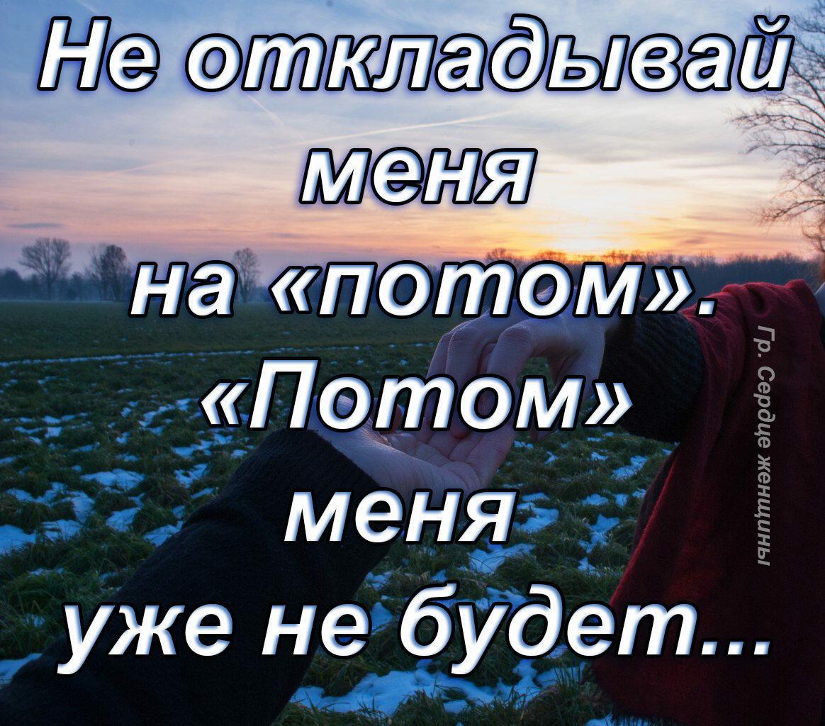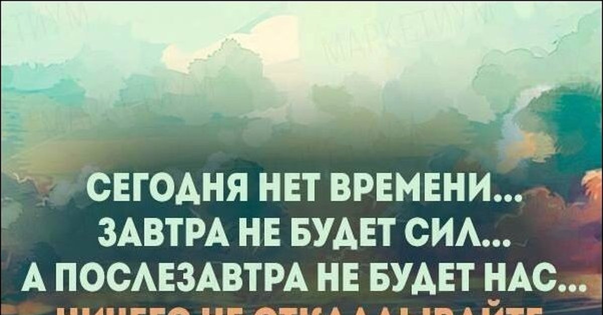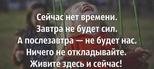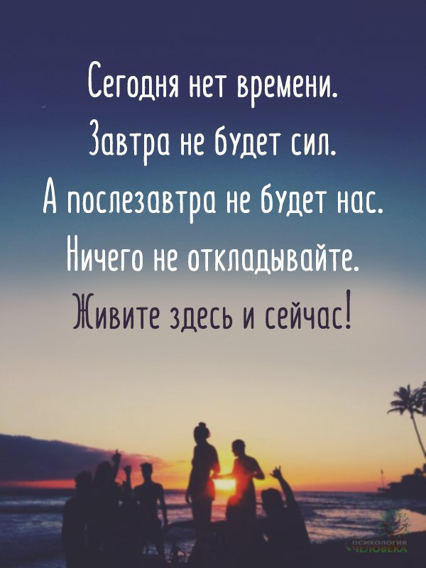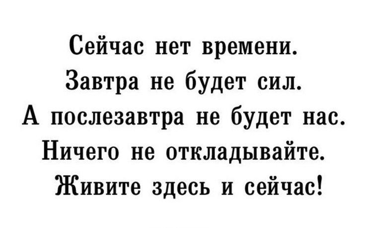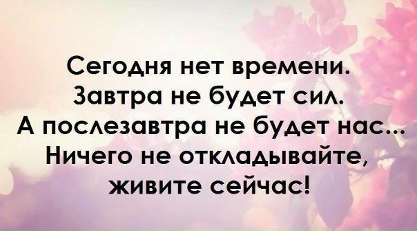 Сейчас нет времени потом не будет сил потом не будет нас: Сегодня нет времени…Завтра не будет сил…А послезавтра не будет нас… Ничего не откладывайте, живите сейчас!