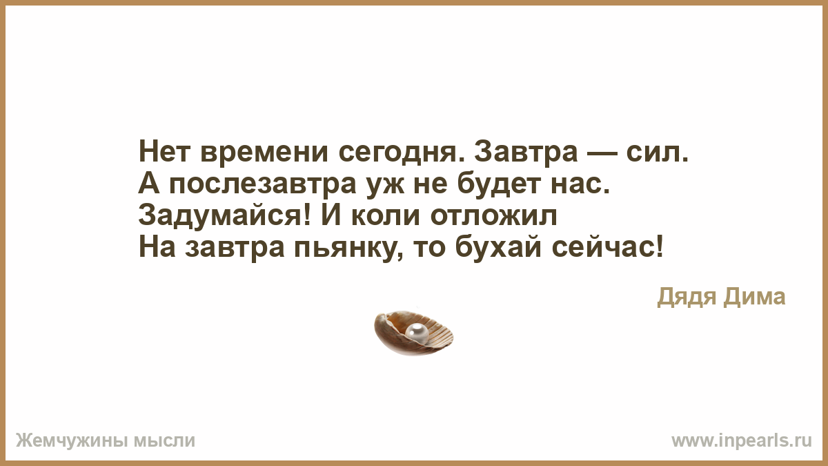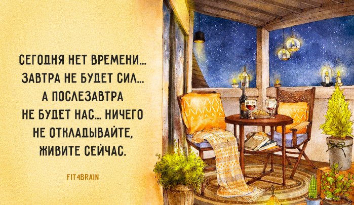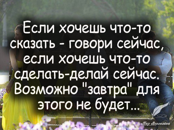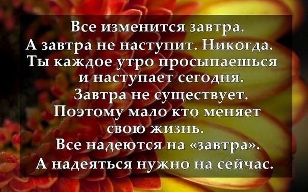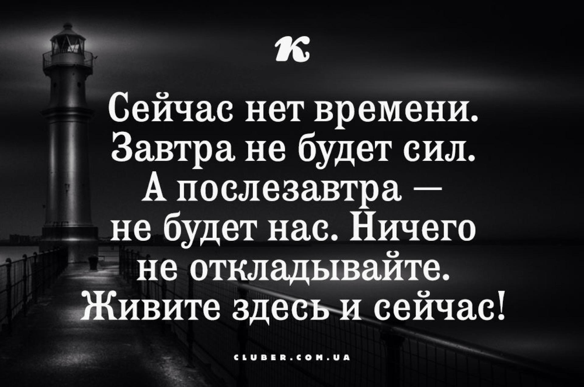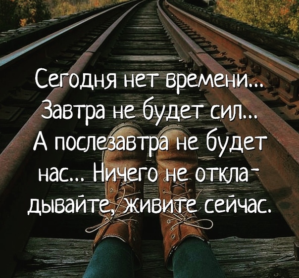 Сегодня нет времени… Завтра не будет сил… А послезавтра не будет нас… Ничего не откладывайте, живите сейчас.
