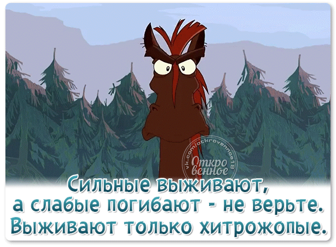 Сильные выживают а слабые погибают не верьте: Вот говорят..Сильные выживают,а слабые погибают- не верьте…Выживают только хитрожопые. Это так или ? — Спрашивалка