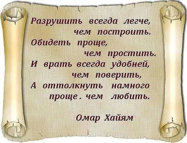 (Таджикская). Смысл данной половицы в том, что людская молва порой портит любые, даже самые крепкие отношения. Точно так же испортить и разрушить любовь могут грубые и обидные слова. Иногда в порыве гнева и злости люди говорят любимым очень обидные слова, несправедливо обвиняют их. Даже самому ангельскому терпению в таком случае может прийти конец, и отношения тогда заканчиваются.